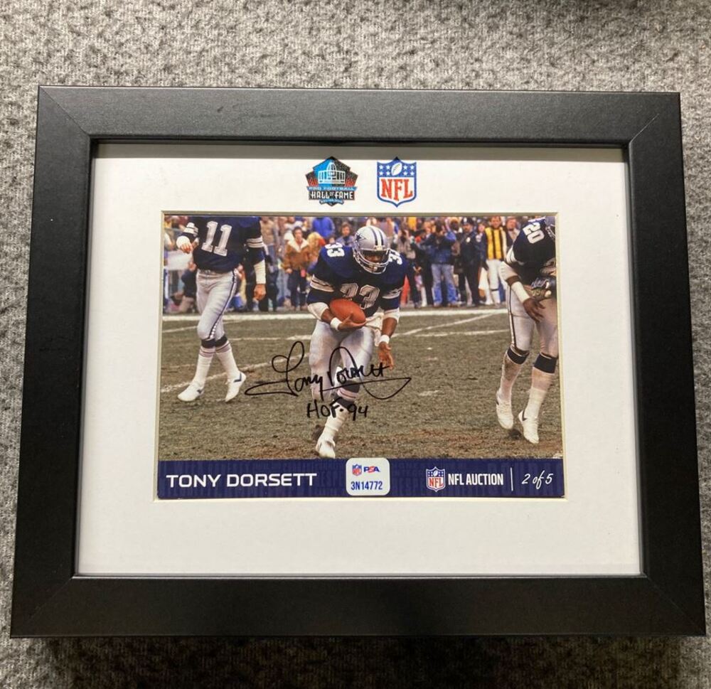HOF - Cowboys Tony Dorsett NFL Auction Exclusive Signed 5x7 Framed Photo Individually Numbered 2 of 5 HOF 94 Inscription