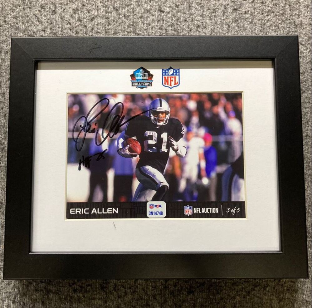 HOF - Raiders Eric Allen NFL Auction Exclusive Signed 5x7 Framed Photo Individually Numbered 3 of 5 HOF 25 Inscription